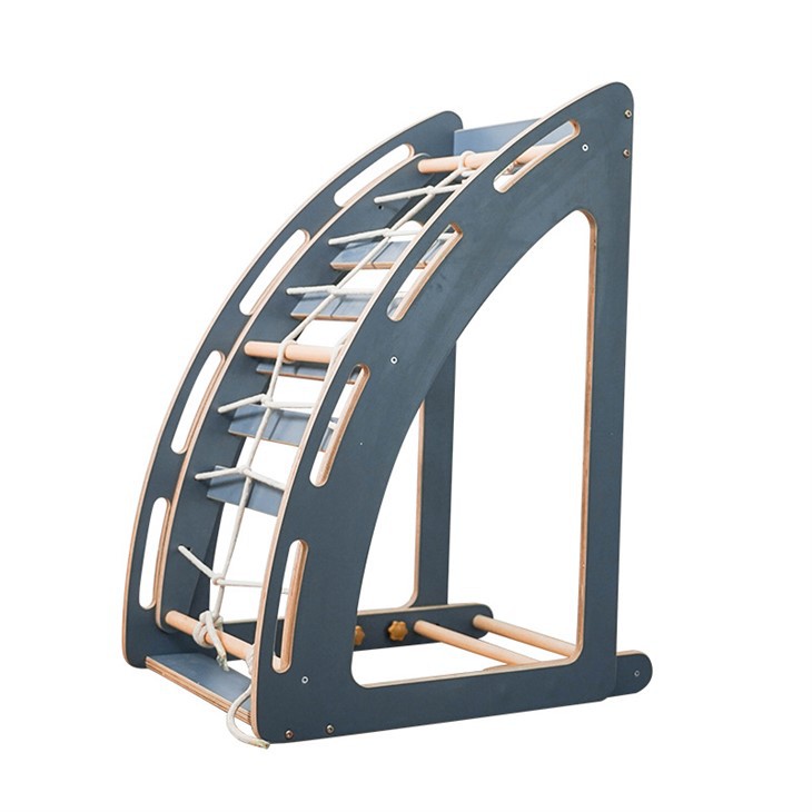 2. Karakteristike proizvoda: Ljestve za penjanje izrađene su od prirodnog drva, a površina je lakirana ekološki prihvatljivim premazima na bazi vode. Nema iritantnog mirisa i zadovoljava standarde za dječju upotrebu. Sivi zakrivljeni izgled čini ljestve stabilnijim i lakšim za penjanje, omogućujući djeci da iskuse sretan proces penjanja.
