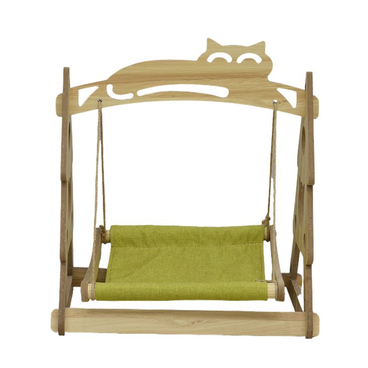 Drveni viseći krevet za mačke s dizajnom od zadebljanog pamuka i lana, otporan na ugrize i ogrebotine, čvrst i izdržljiv.